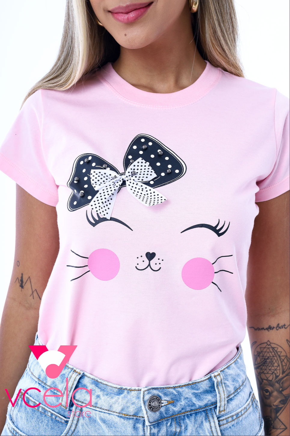 Be the first to review “T-shirt Gato rosto laço – Rosa bebê”