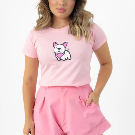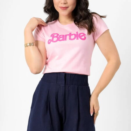 T-shirt Barbie esccrita glitter – Rosa bebê