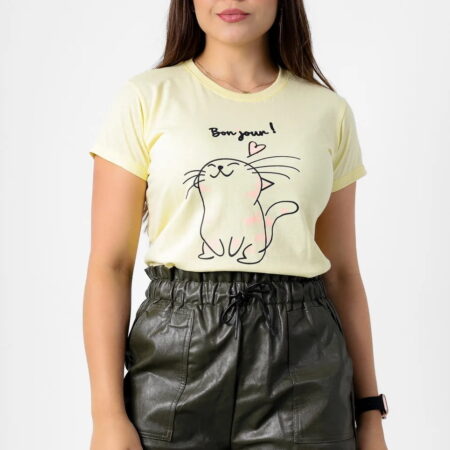 T-shirt Gato coração Bon Jour – Amarelo bebê